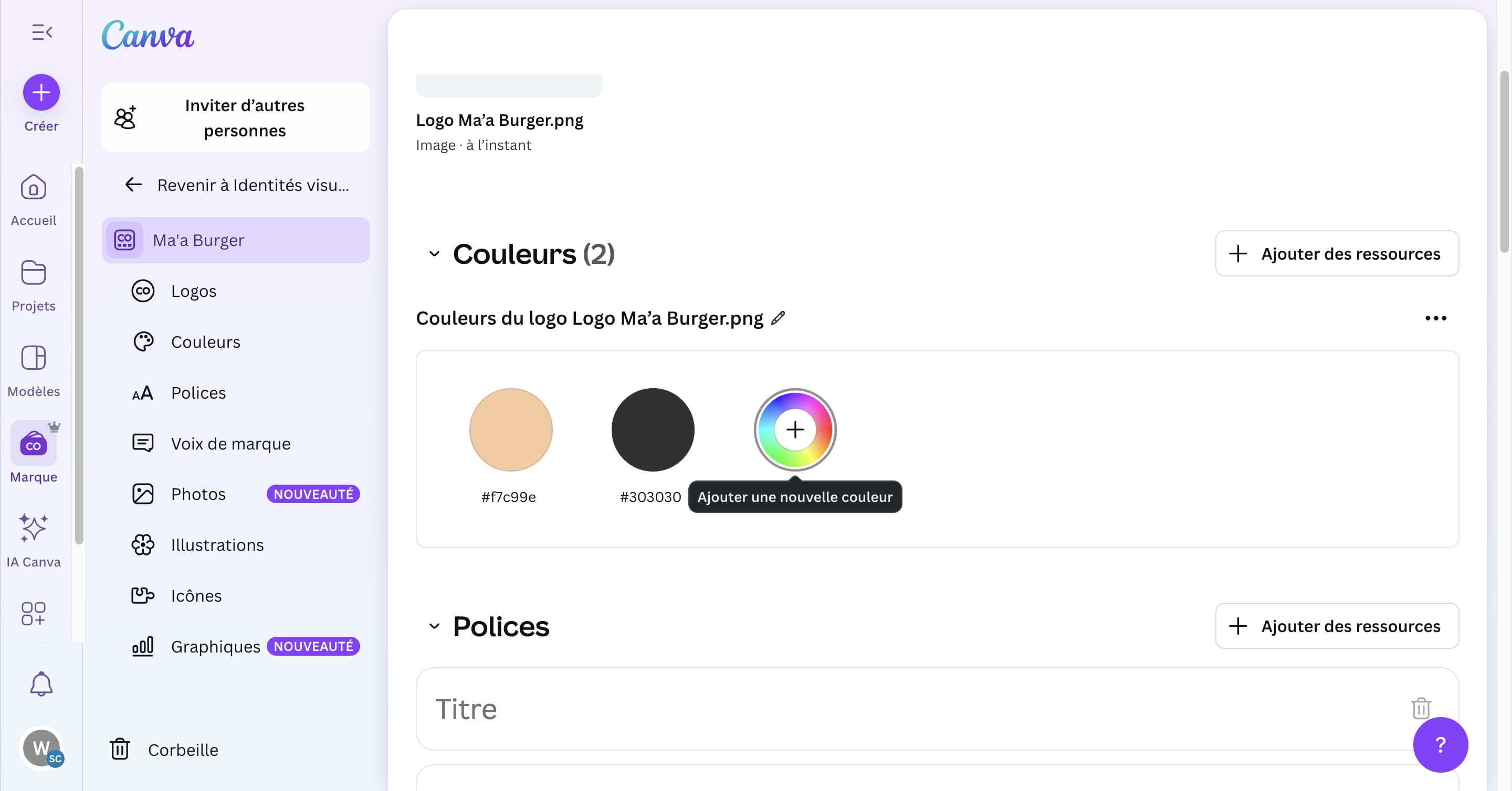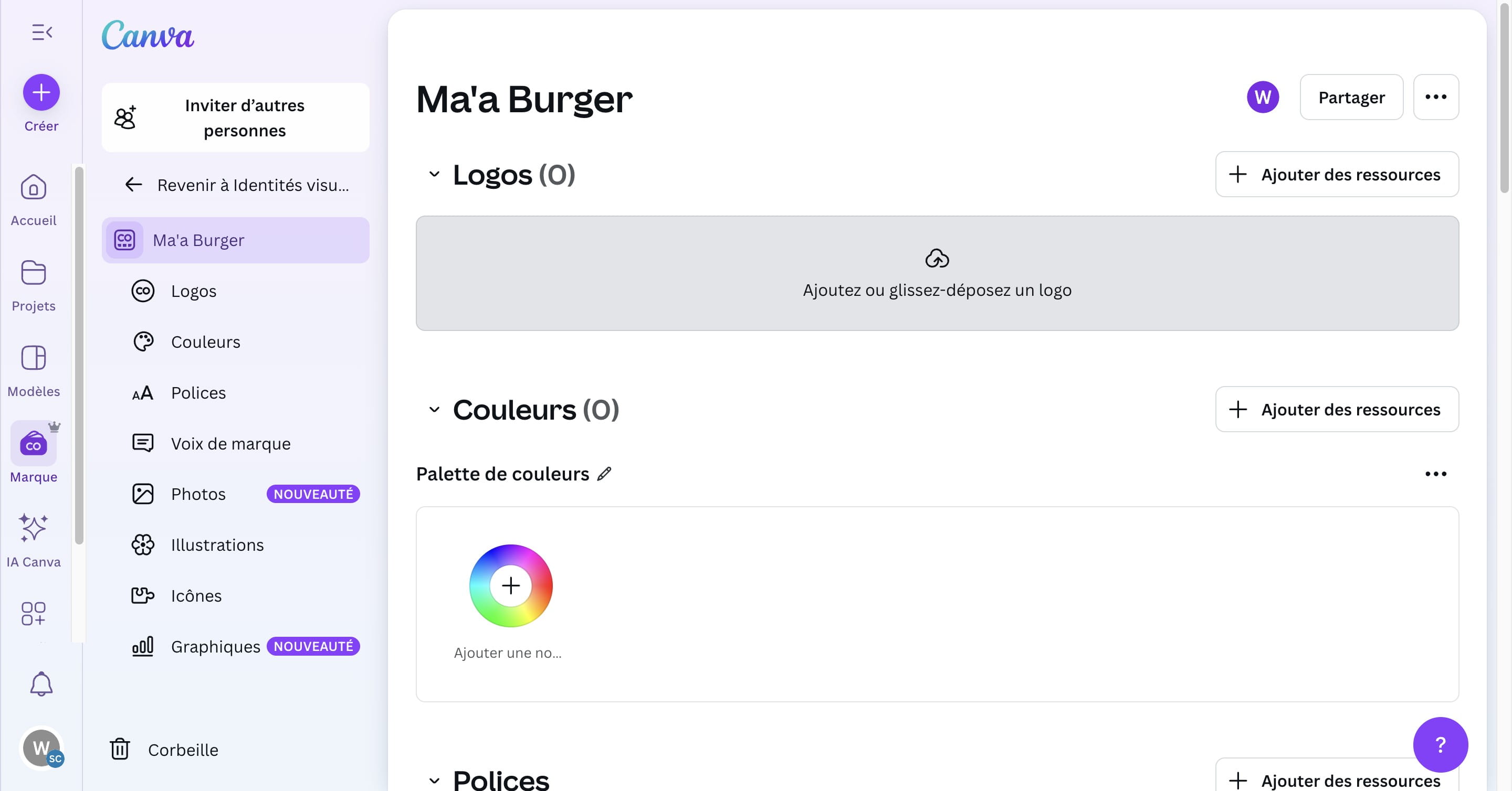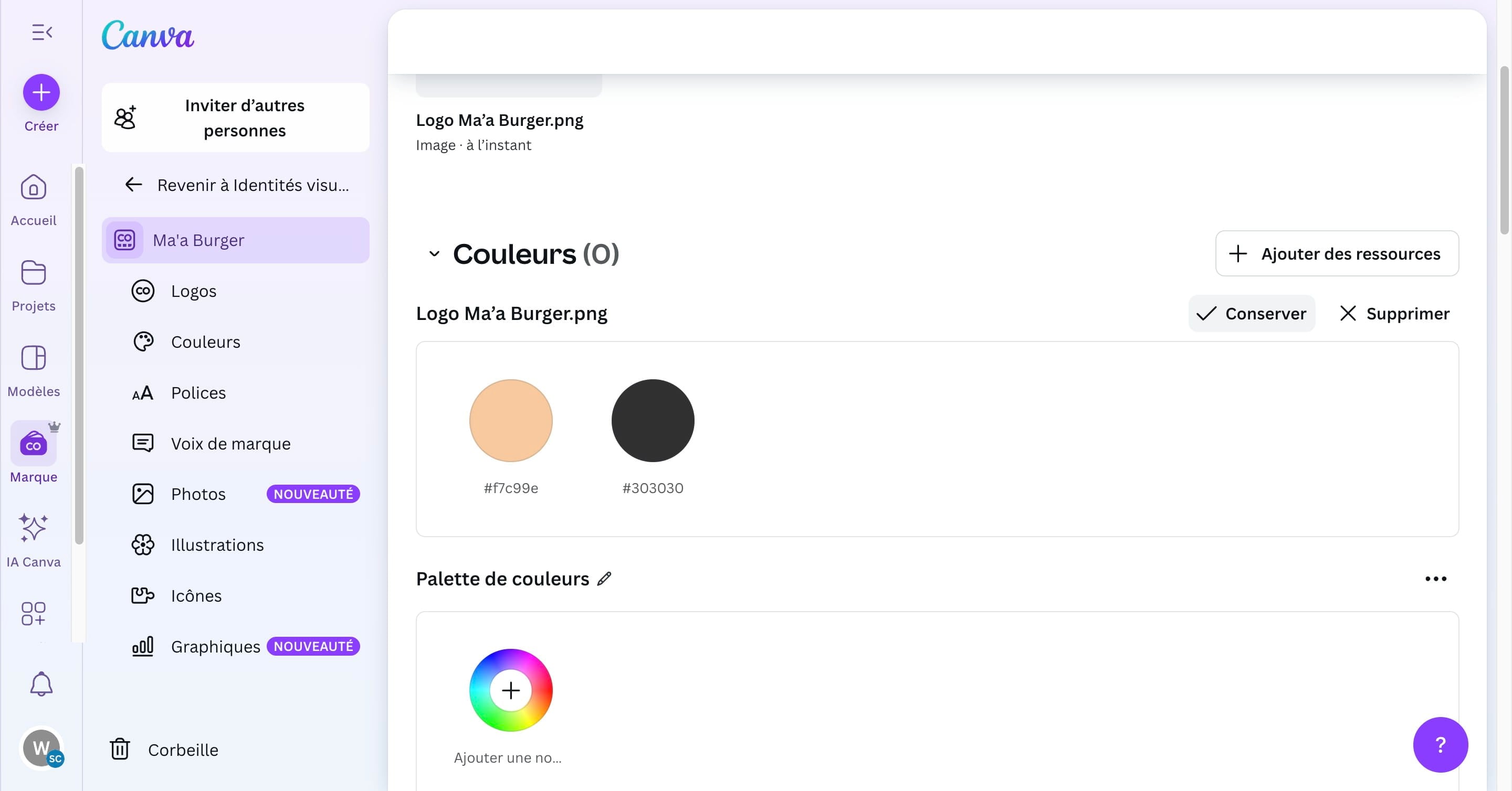 Créer sa marque sur Canva permet de garder de la cohérence de couleur, de polices et d'éléments graphiques sur l'ensemble des supports créés. Fonctionnalité accessible uniquement sur les comptes payants.