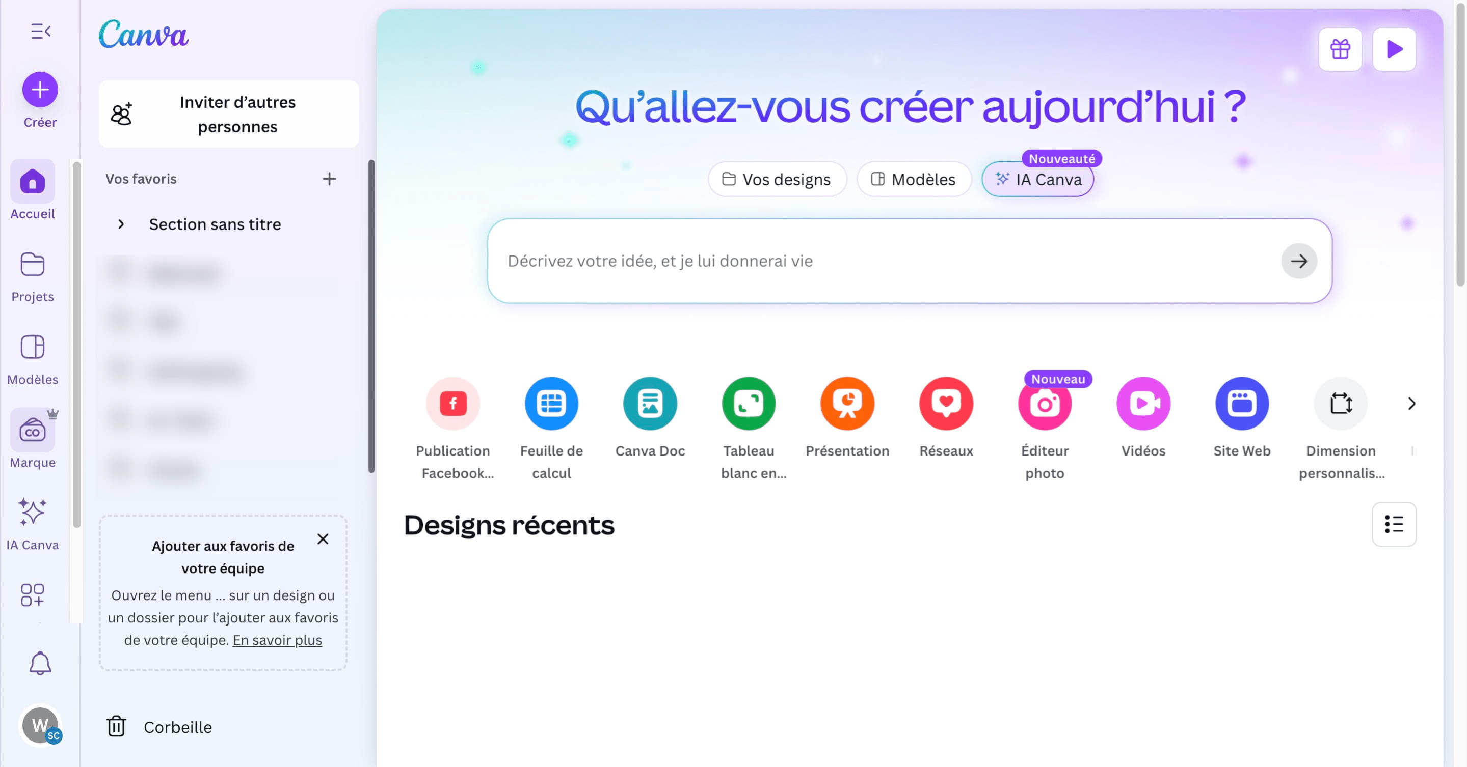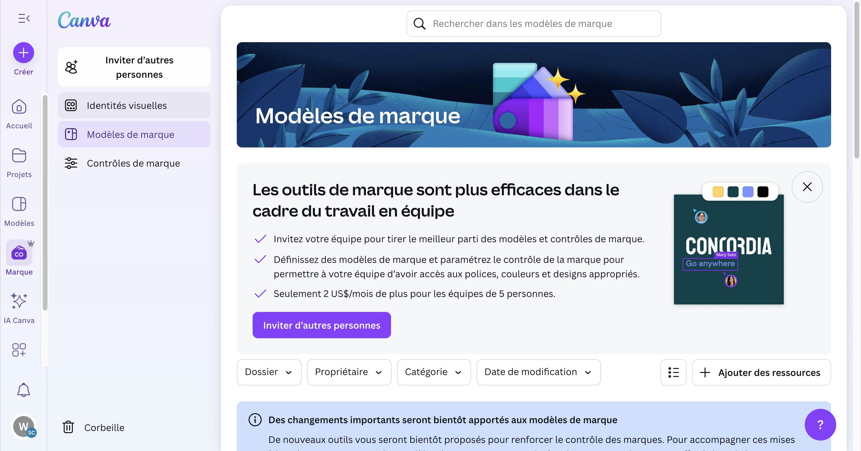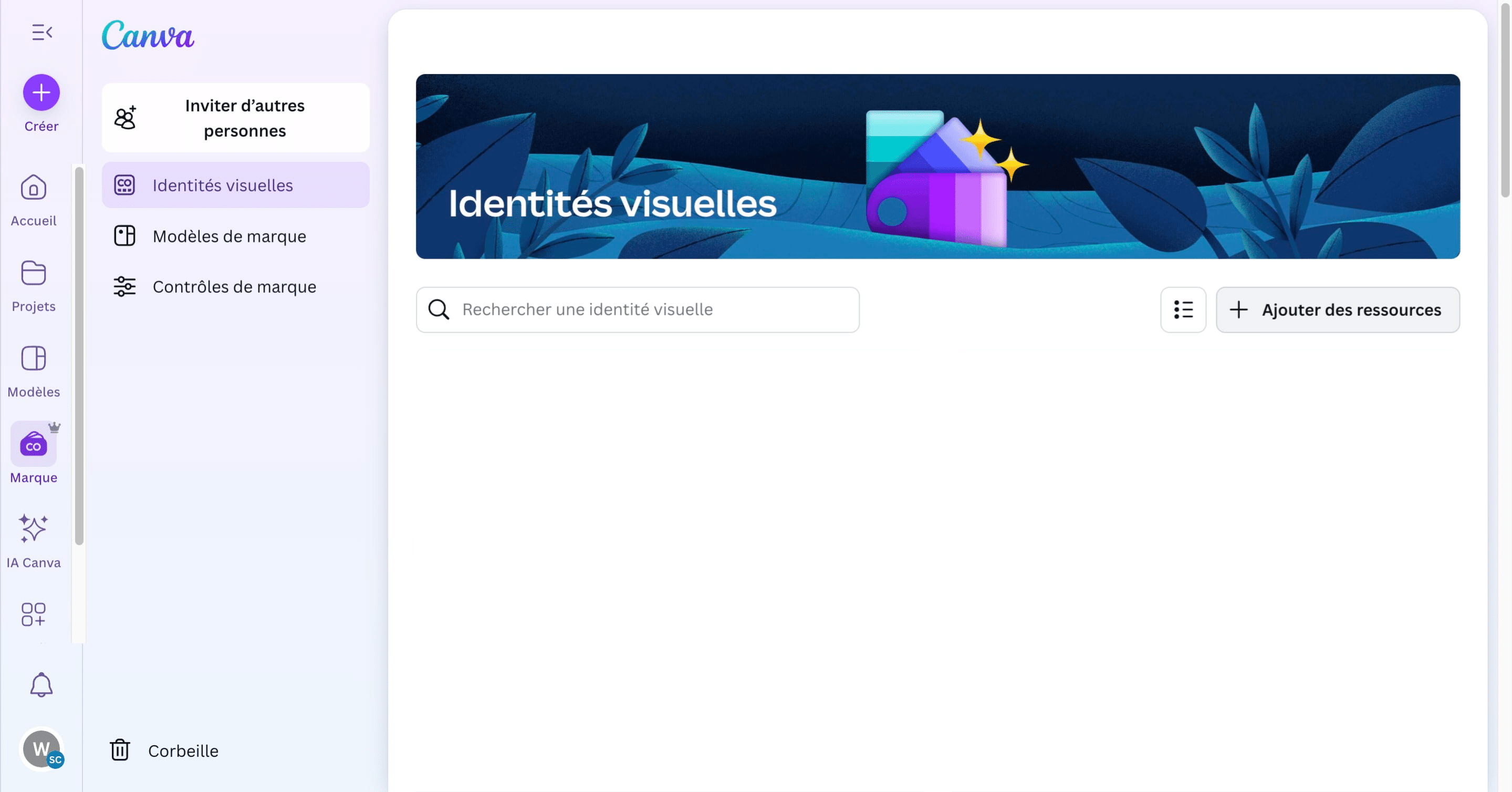 Créer sa marque sur Canva permet de garder de la cohérence de couleur, de polices et d'éléments graphiques sur l'ensemble des supports créés. Fonctionnalité accessible uniquement sur les comptes payants.