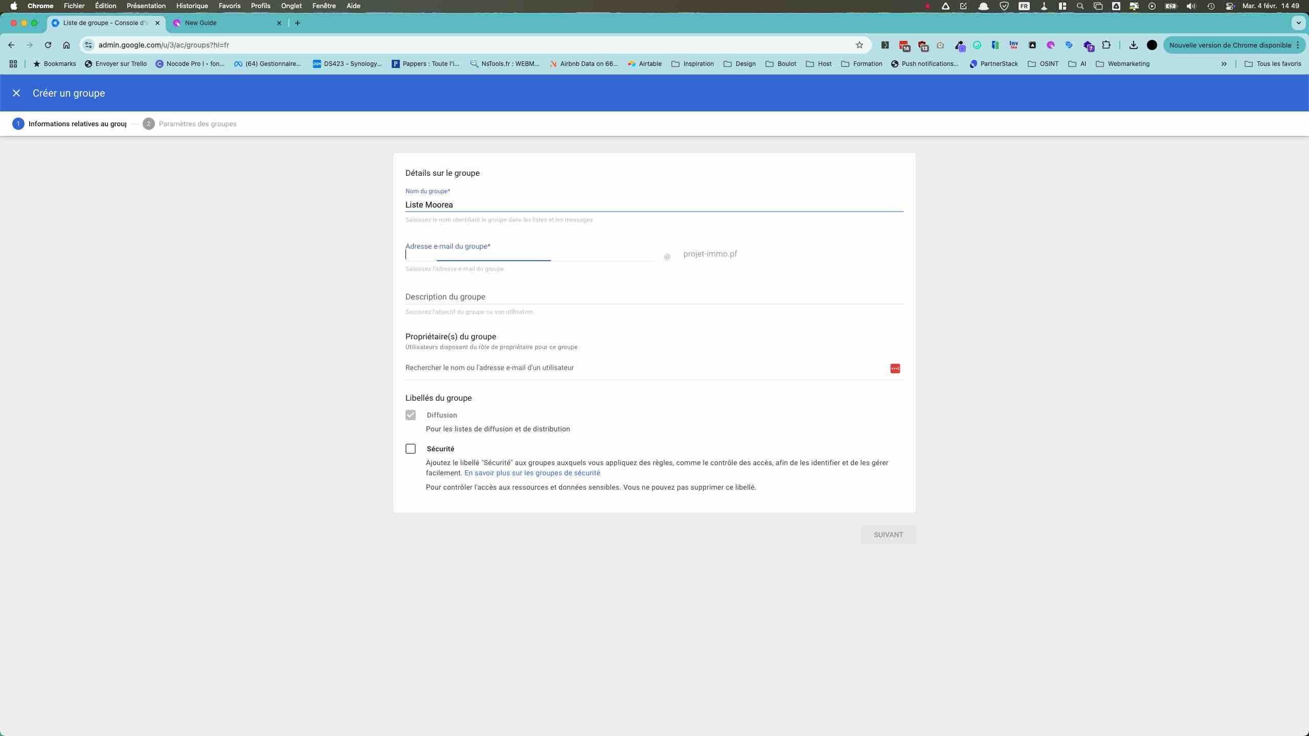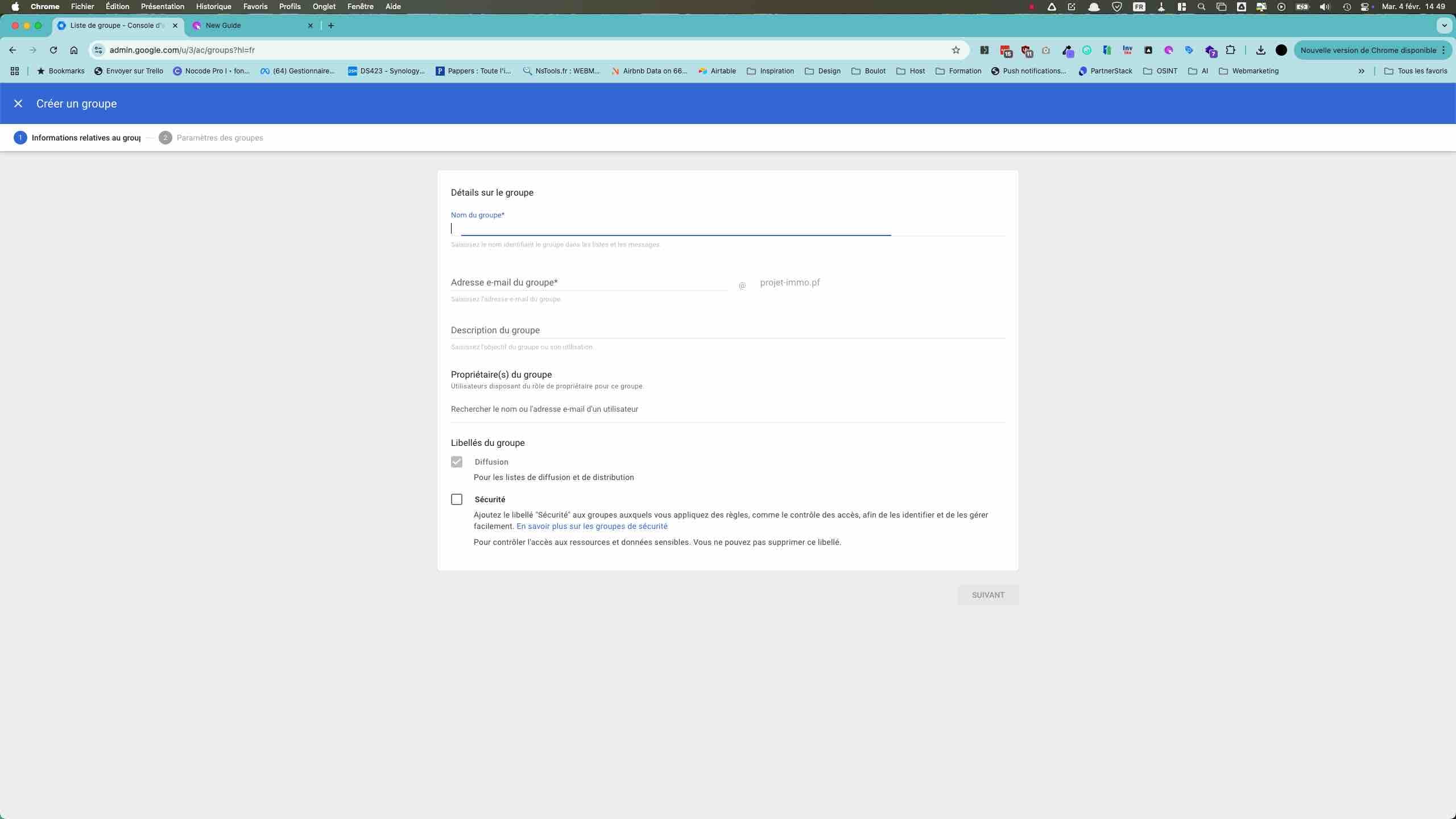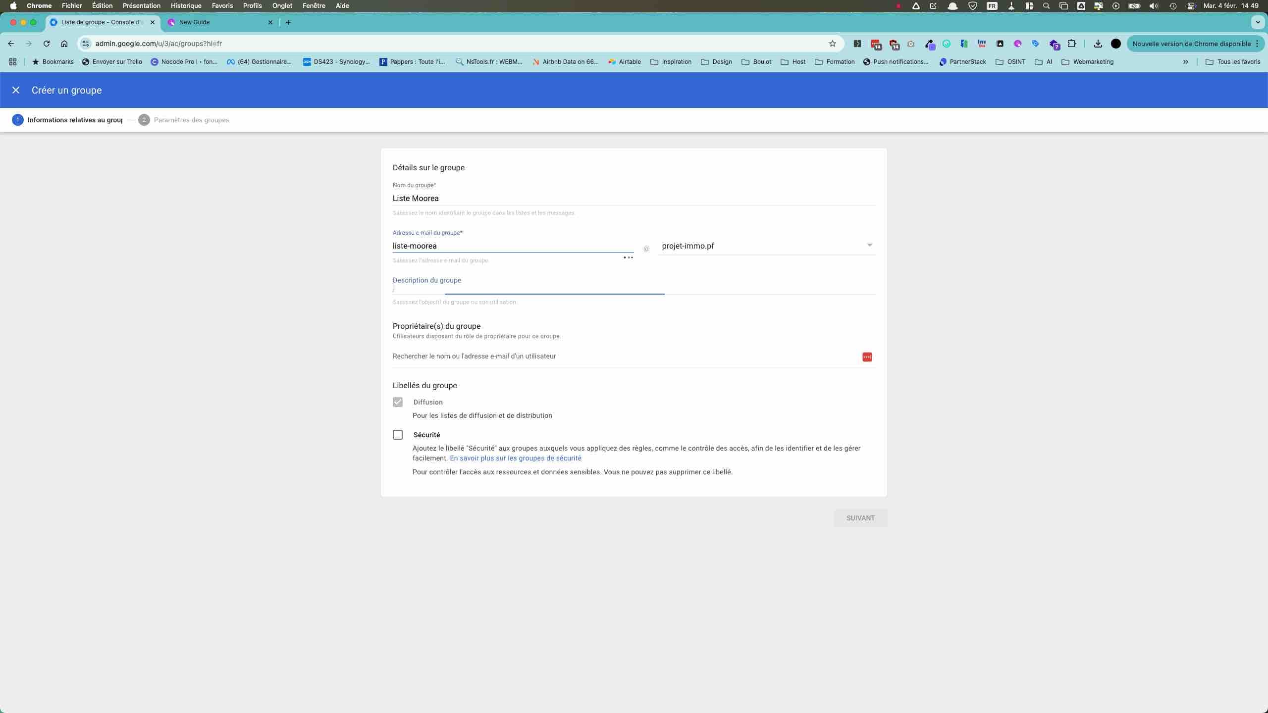 Créer un groupe pour envoyer des emails à une liste de collaborateurs ou partager des dossiers google drive à un groupe de collaborateurs en ne saisissant qu'un seul email. La création du groupe engendre automatiquement la création d'un alias au nom de ce groupe.